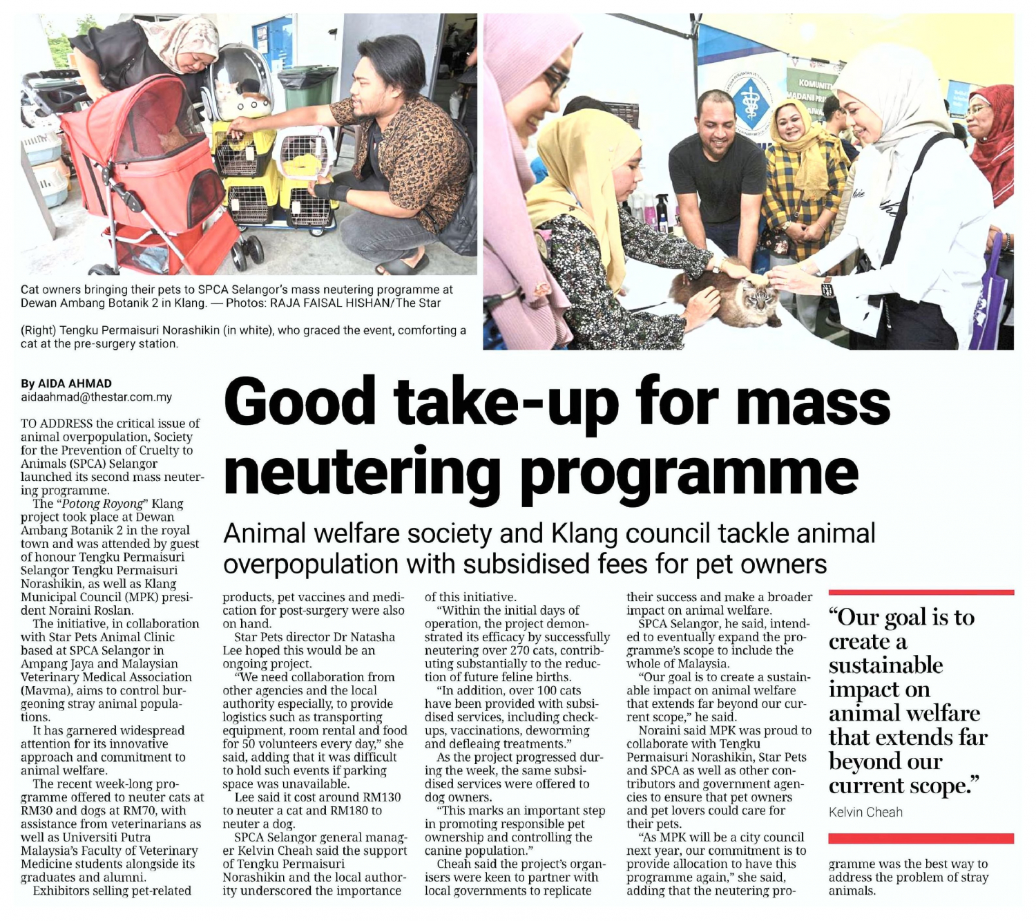 GOOD TAKE-UP FOR MASS NEUTERING PROGRAMME
