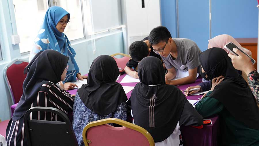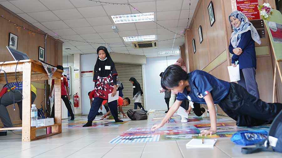 Pelajar sekolah berkenaan telah dikumpulkan secara berpasangan dan dibahagikan kepada dua kategori iaitu sekolah rendah dan sekolah menengah dan mereka berasa seronok mengikuti aktiviti yang dijalankan dalam menerokai ilmu matematik.