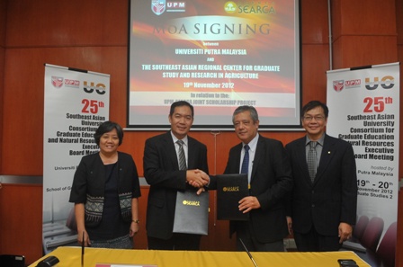 Sejajar dengan matlamat penubuhannya untuk mengukuhkan kemampuan universiti dalam bidang pertanian dan pembangunan luar bandar di Asia Tenggara melalui program biasiswa siswazah, penyelidikan dan pembangunan serta pengurusan ilmu, SEARCA telah mengembangkan program penawaran biasiswa bagi pengajian siswazah ke UPM.