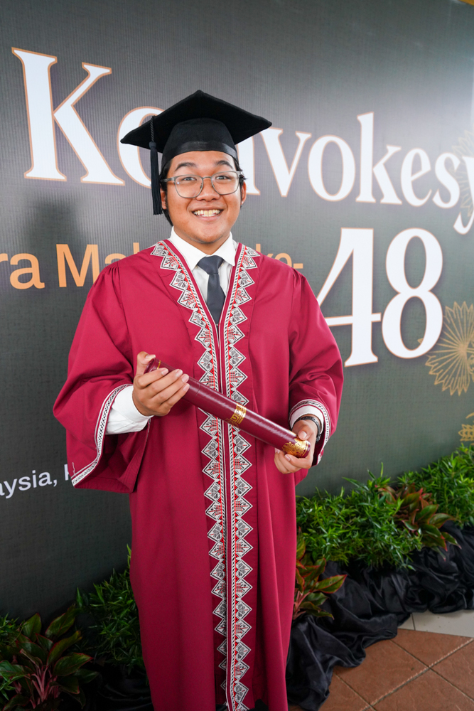 “Muzik adalah bakat yang ada dalam diri saya, jadi saya rasa tidak rugi untuk meneruskannya. Meskipun bidang akademik saya tidak selari dengan minat, saya tetap berusaha untuk mencapai kejayaan dalam kedua-dua bidang ini,” katanya yang ditemui selepas Majlis Konvokesyen Universiti Putra Malaysia ke 48 di Kampus Bintulu hari ini.